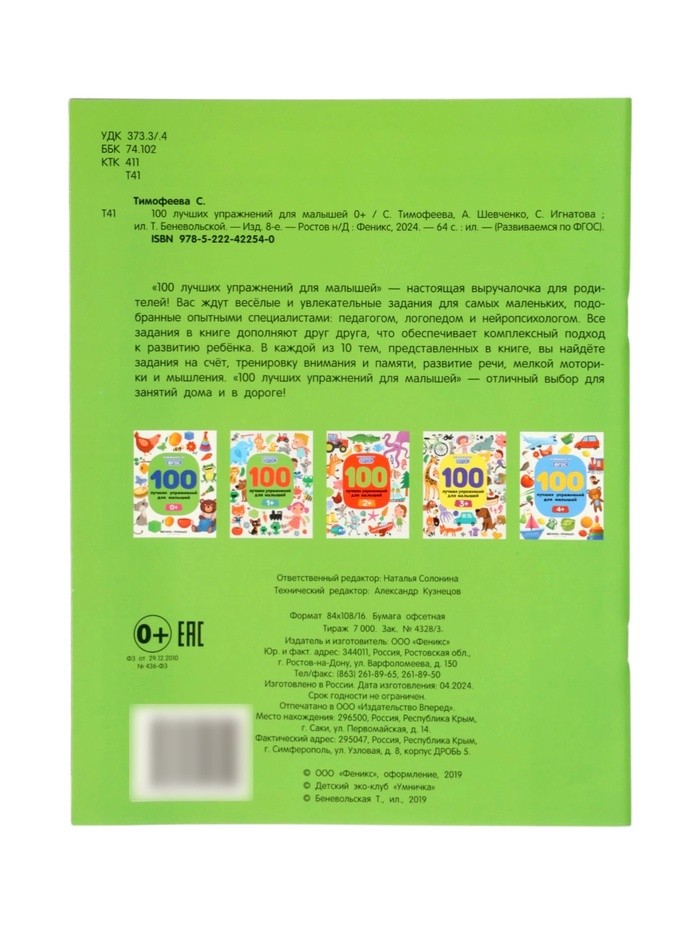 Технические характеристики 100 лучших упражнений для малышей: 0+, Тимофеева С.