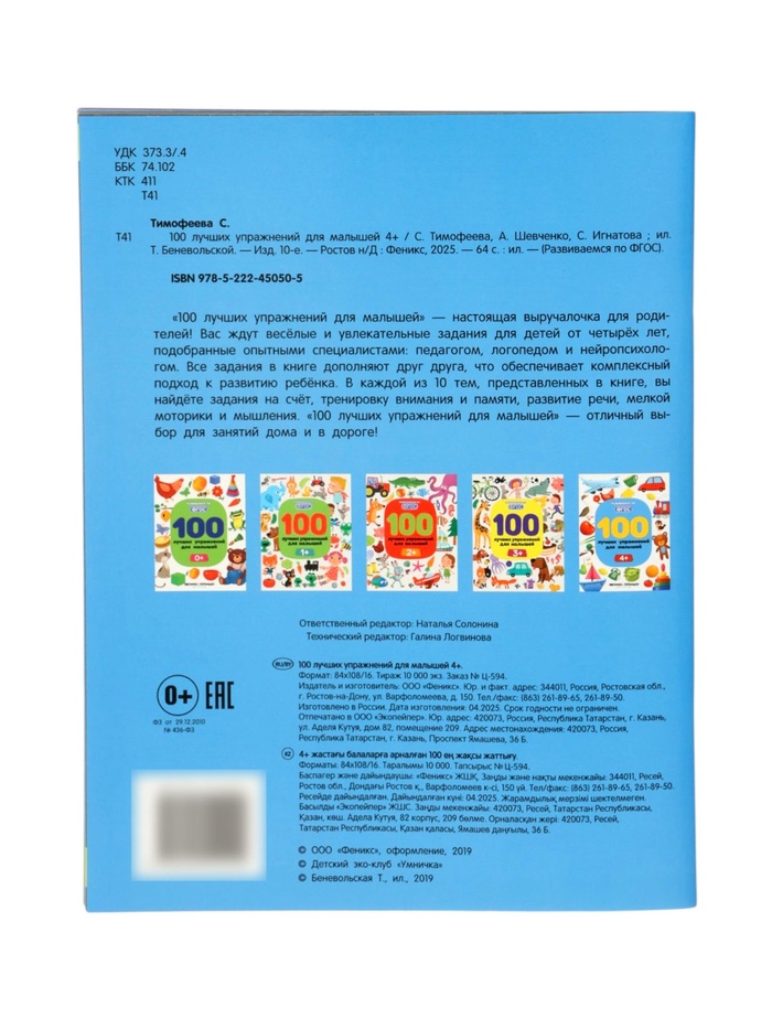 Технические характеристики 100 лучших упражнений для малышей: 4+, Тимофеева С.