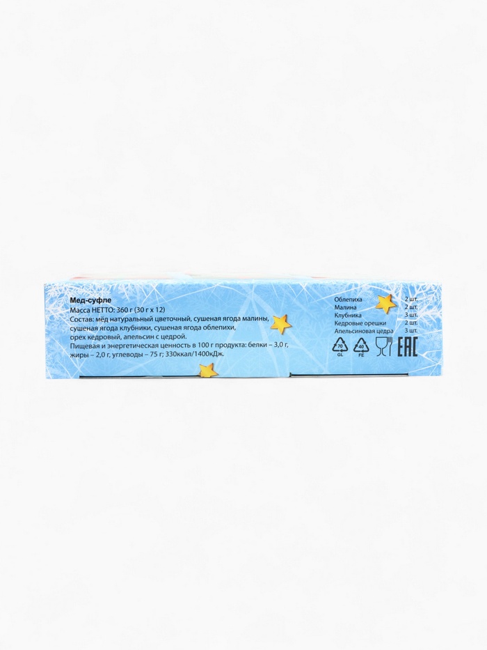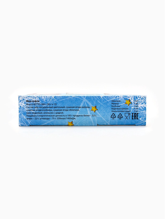 Технические характеристики Адвент календарь новогодний с мёдом «Счастливого Нового года», облепиха, кедровые орешки, малина, цитрус, клубника (12 шт.×30 г)