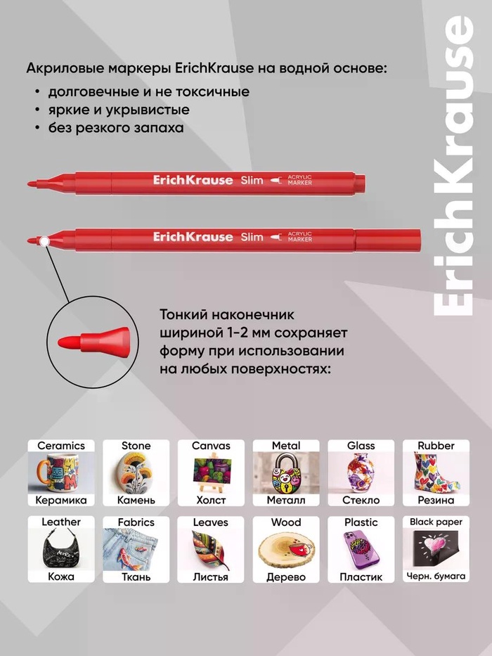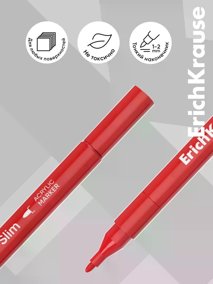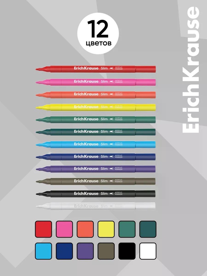 Акриловые маркеры 12цв ErichKrause Slim Cheat Meal, пулевидн., европодвес