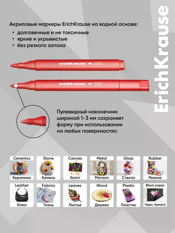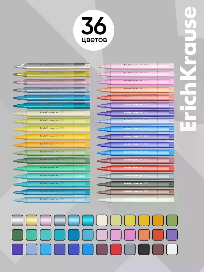 Технические характеристики Акриловые маркеры 36цв ErichKrause Art Spirit, пулевидн., 6 металл цв., европодвес