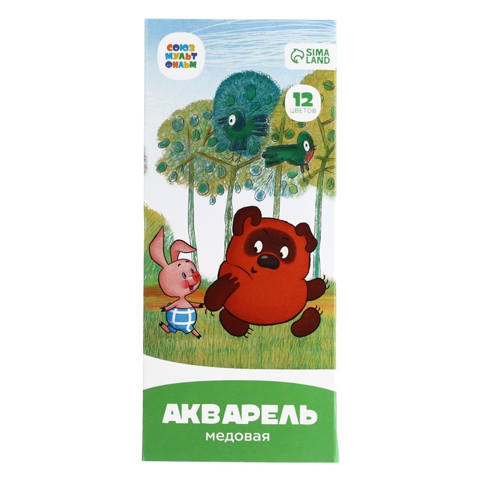 Акварель медовая «Винни Пух», Союзмультфильм, 12 цветов, в картонной коробке, без кисти
