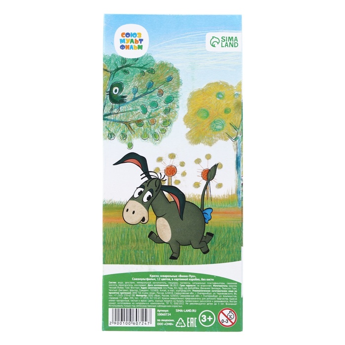 Технические характеристики Акварель медовая «Винни Пух», Союзмультфильм, 12 цветов, в картонной коробке, без кисти