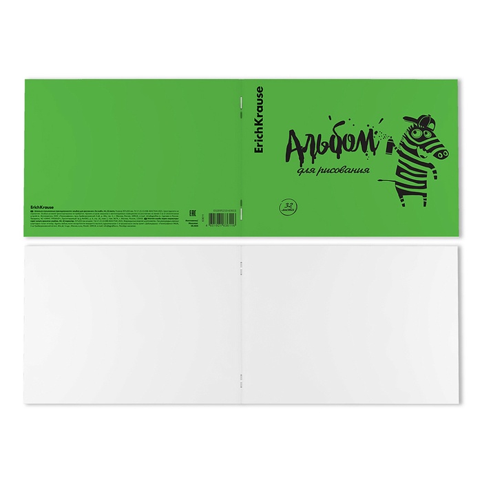 Технические характеристики Альбом А4 32л на скобе Erichkrause Zebra, пласт. Обложка, Neon зеленый