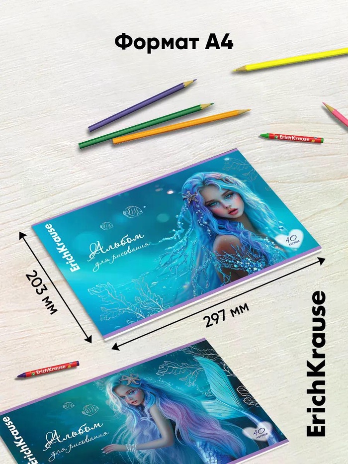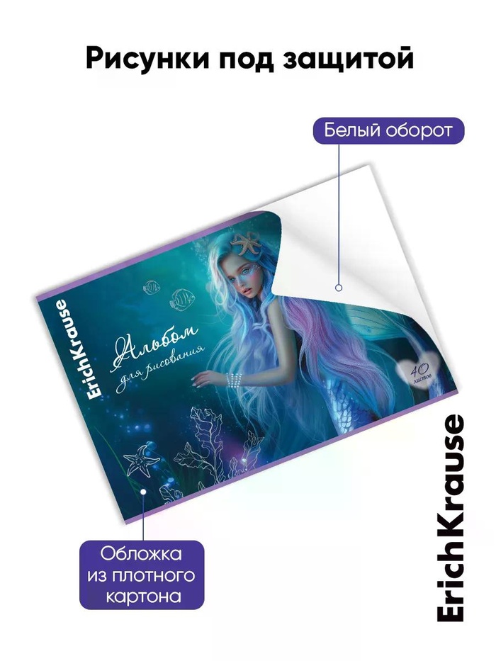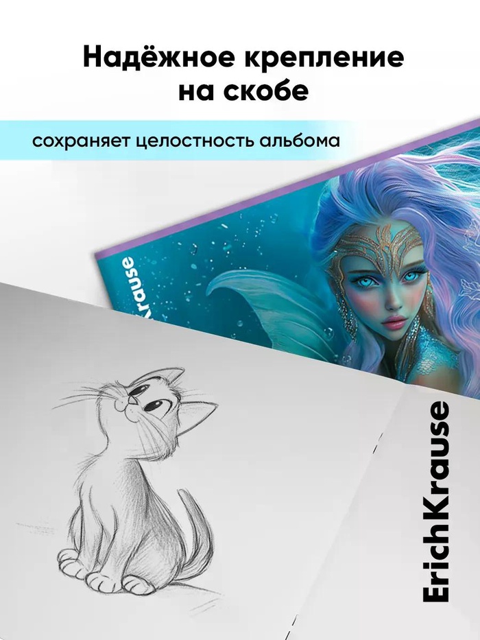 Альбом для рисования А4 ErihKrause Aquamarine, 40 листов, на скобе, МИКС