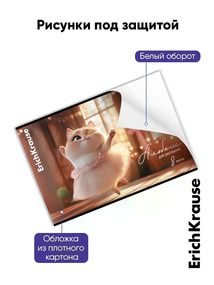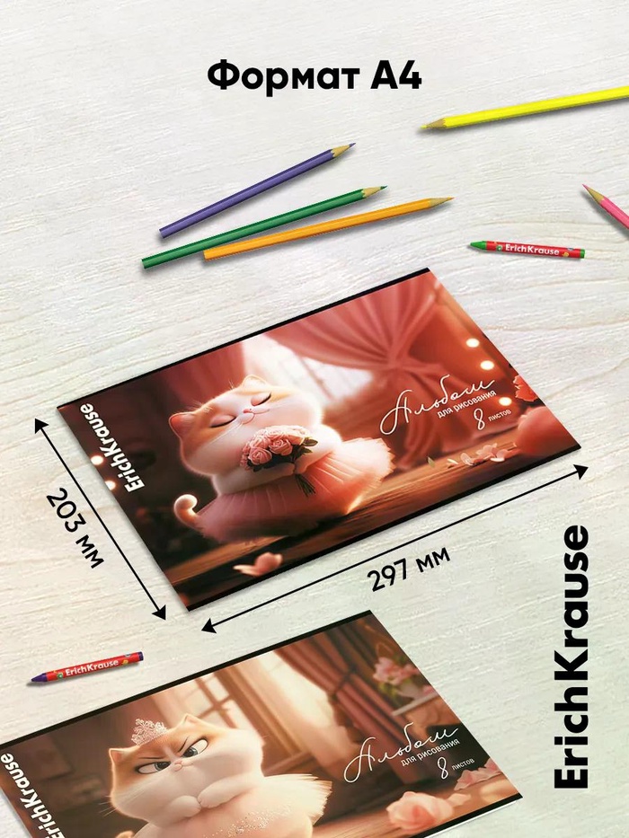 Альбом для рисования А4 ErihKrause Prima Cat, 8 листов, на скобе, МИКС