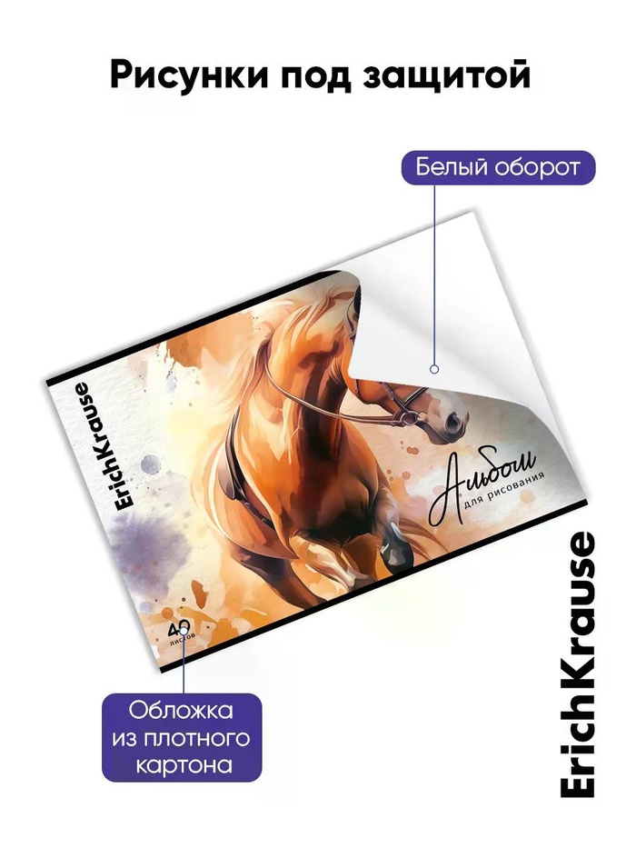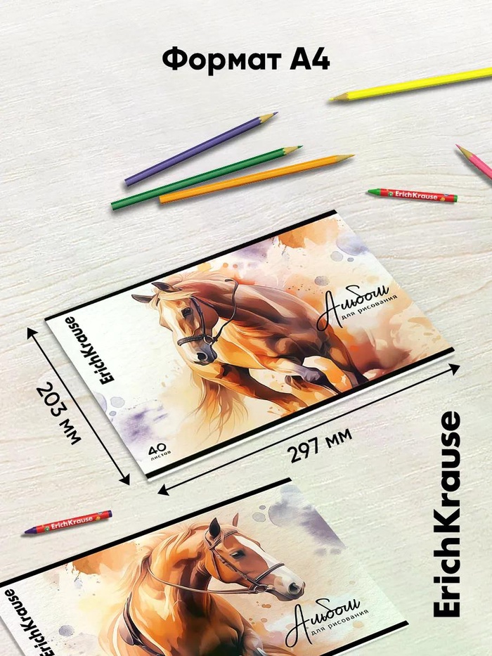 Альбом для рисования А4 ErihKrause Wild Mane, 40 листов, на скобе, МИКС
