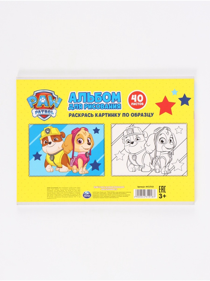 Технические характеристики Альбом для рисования на скрепке, А4, 40 листов, 2 штуки, «Щенячий патруль»