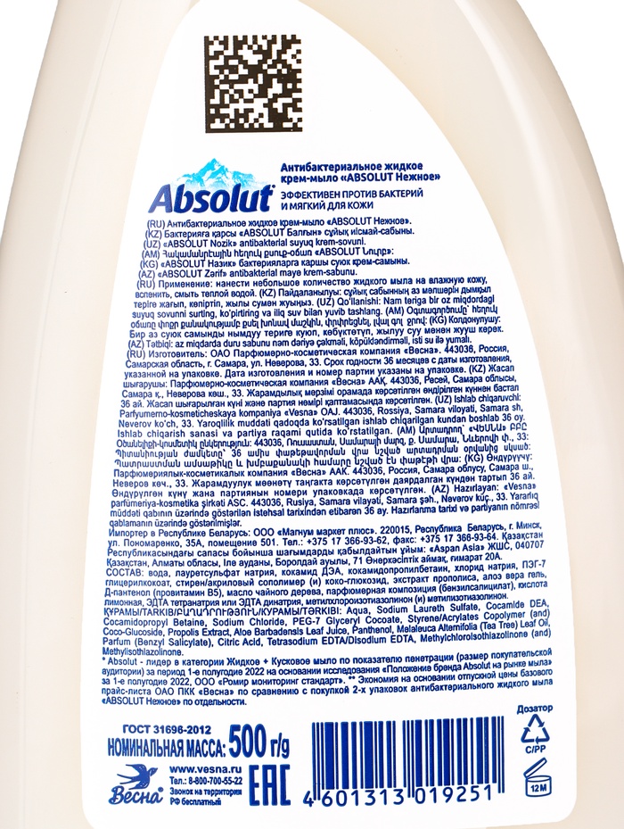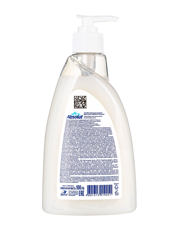 Технические характеристики Антибактериальное жидкое мыло ''ABSOLUT 2в1" нежное, 500 г