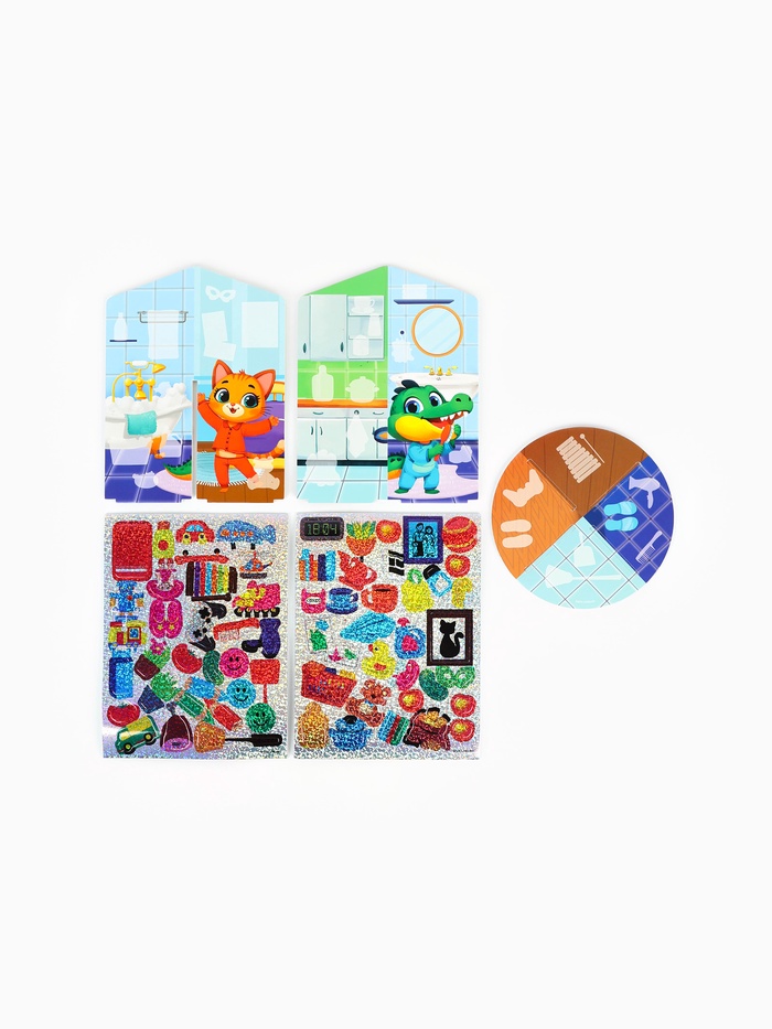 Аппликация с стикерами — это увлекательный набор для творчества, который поможет ребёнку не только интересно провести время, но и развить важные навыки. Достаточно подобрать нужные наклейки и аккуратно разместить их на основе — и яркая картинка будет готова! Такой формат творчества не требует клея и ножниц, поэтому подходит даже для самых маленьких.