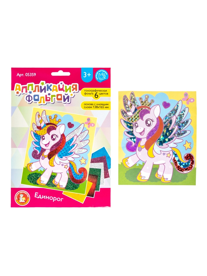 Аппликация фольгой «Единорог», 14×16.5 см, набор для творчества