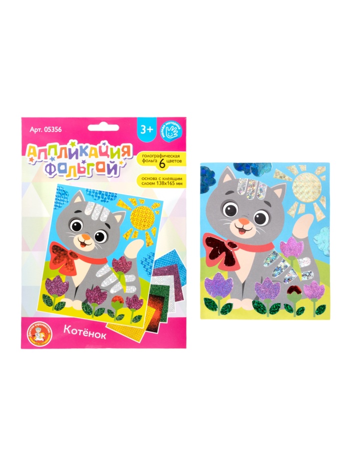 Аппликация фольгой «Котёнок», 14×16,5 см, набор для творчества