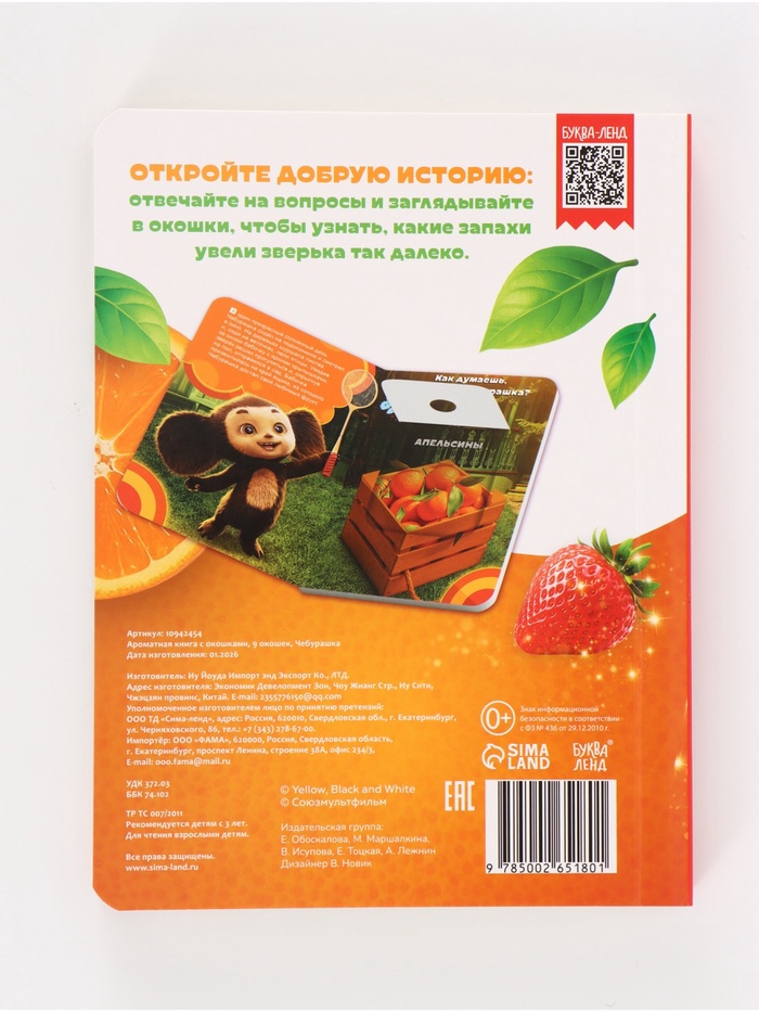 Ароматная книга с окошками «Чебурашка», 9 окошек
