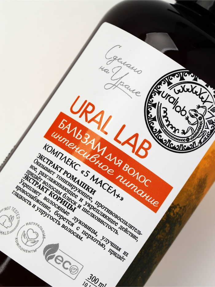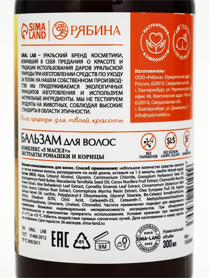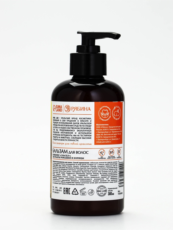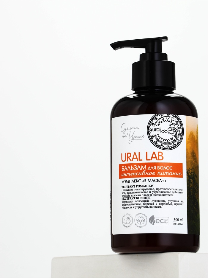 Технические характеристики Бальзам для волос с экстрактом ромашки и корицы, интенсивное питание, 300 мл, ECO LAB by URAL LAB