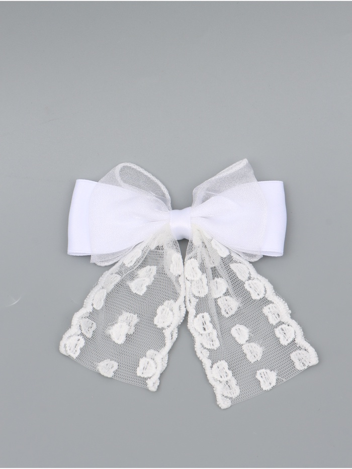 Бант для волос на заколке с лентами «Сердечки», белый, Принцессы Дисней