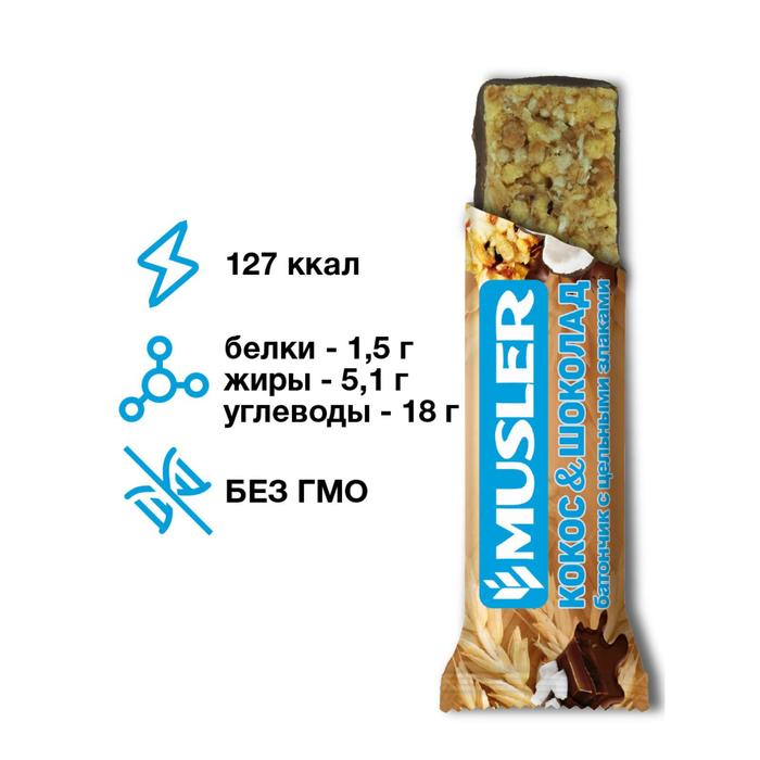Батончик мюсли Кокос в темной глазури MUSLER 30 г продажа, цена в Минске
