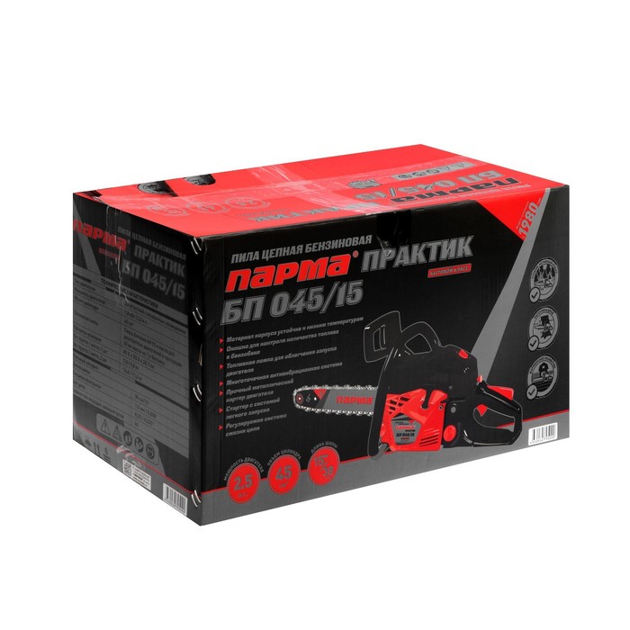 Бензопила «ПАРМА» БП 045/15, 2Т, 1.8 кВт, 2.5 л.с., 15«, шаг 0.325», 64 зв.
