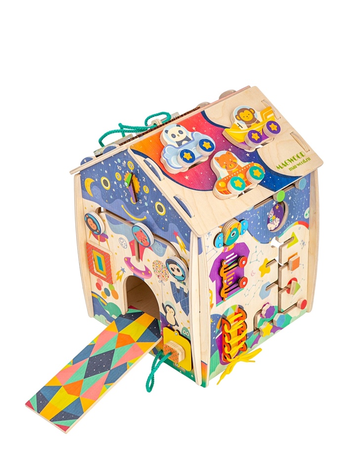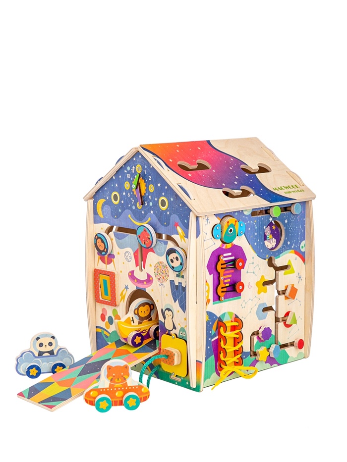 - Компактный центр активности: Формат бизидома объединяет несколько развивающих задач в одном предмете. Домик легко размещается в детской комнате и подходит для самостоятельной игры.