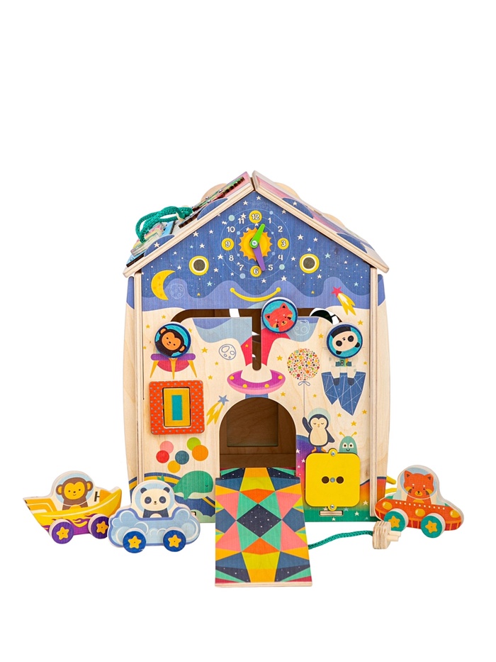 Маленькое космическое путешествие начинается прямо в детской комнате. Деревянный развивающий домик «Космос» — это игровой центр для детей от 3 лет, где любопытство превращается в исследование. Ребёнок открывает стороны домика, двигает детали, соединяет элементы и знакомится с простыми механизмами. Игра напоминает исследование новой планеты: каждое действие приносит новый результат и поддерживает интерес.