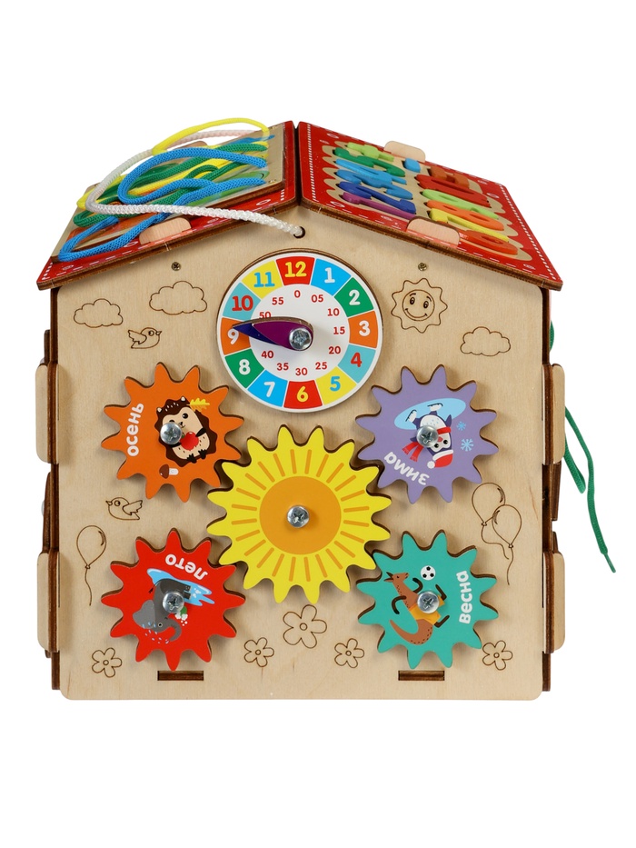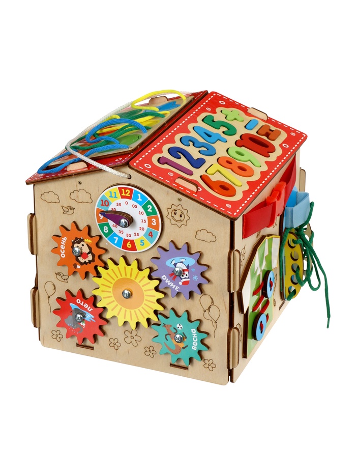 Развивающий игровой центр «Бизидом» — это увлекательная деревянная игрушка для малышей от 3 лет, которая помогает развивать мелкую моторику, логическое мышление и творческие способности. Благодаря разнообразным элементам и продуманной конструкции, она становится идеальным инструментом для обучения и веселья.