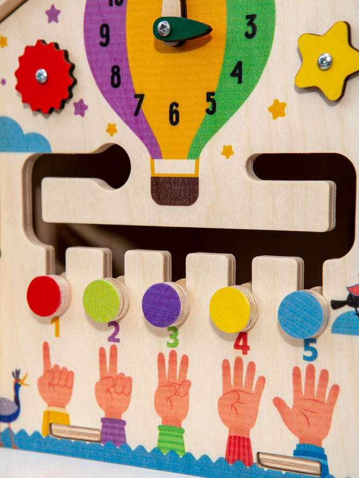 - Интерактивный формат игры: компактный развивающий домик объединяет разные игровые элементы на нескольких сторонах. Такой формат напоминает маленький исследовательский центр, где каждая грань открывает новое действие и удерживает интерес ребенка дольше обычной игрушки.