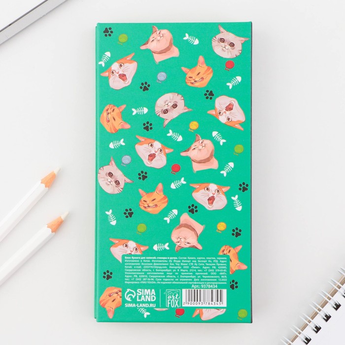 Блок бумаг для записей 3 блока по 30 листов, стикеры, ручка шариковая синяя 0.7 мм «Для котозаметок»