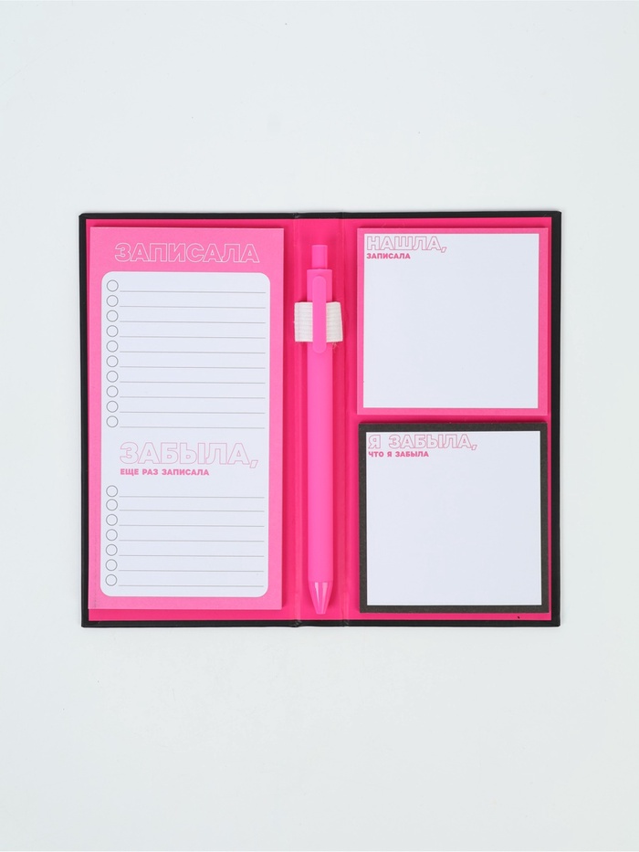 Блок бумаг для записей, стикеры, ручка "Вспомнила записала"