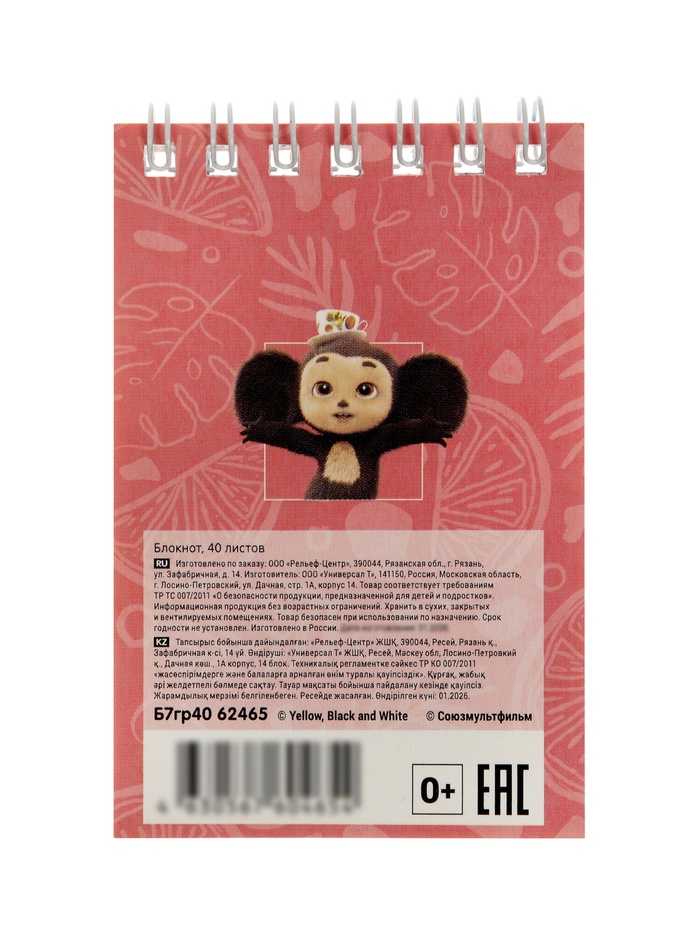 Этот блокнот в клетку подойдёт тем, кто ищет удобную тетрадь для записей в небольшом формате. Он помогает держать под рукой идеи, планы и важные мелочи. «Чебурашка» рядом на обложке — как напоминание о простых радостях, когда даже список дел выглядит чуть добрее.