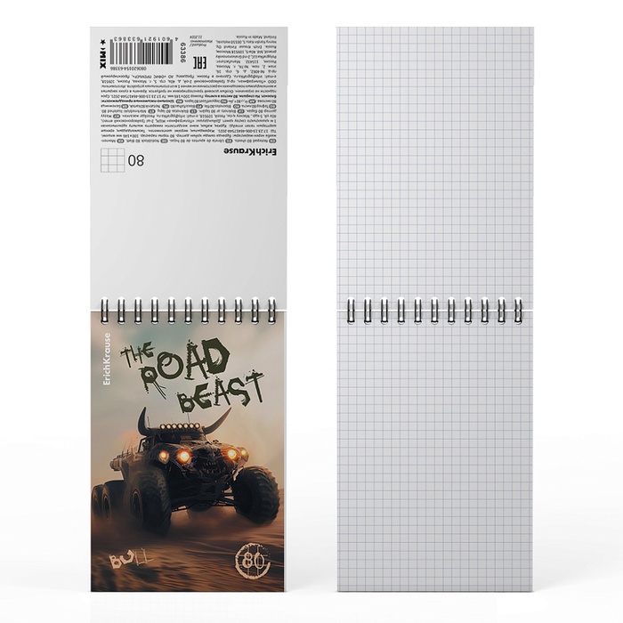 Блокнот А6 ErichKrause Road Beast, 80 листов в клетку, МИКС