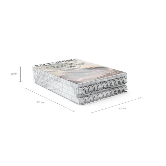 Блокнот формата А6 (100х146 мм). Обложка из высококачественного мелованного картона плотностью 190 г/м2. Плотная подложка 340 г/м2. В блоке 80 листов в клетку. Бумага офсетная плотностью 60 г/м2. Цвет линовки - синий. Тип скрепления - спираль.