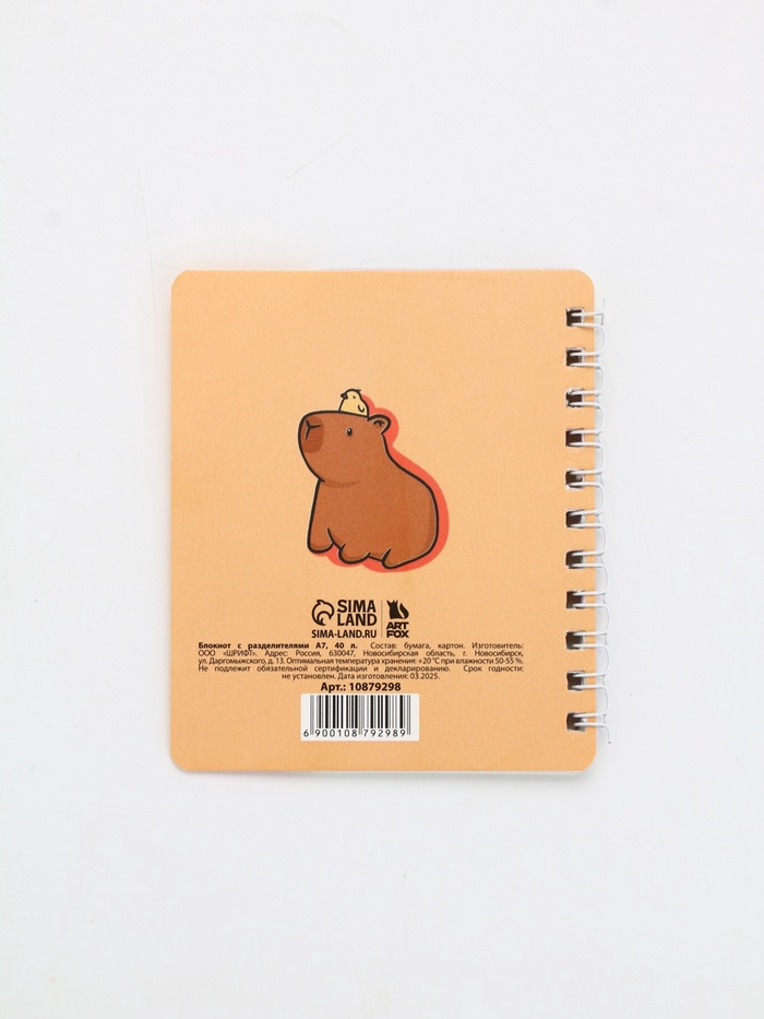 Технические характеристики Блокнот с разделителями А7, 40 л "Капибара"