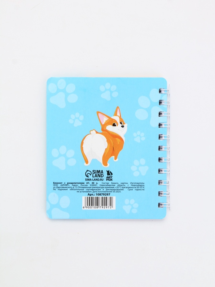 Блокнот с разделителями А7, 40 л "Корги"