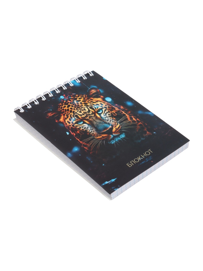 Блокнот на гребне А6 в клетку, 80 листов «Дикая кошка», 60 г/м²