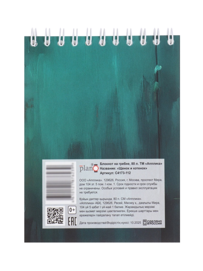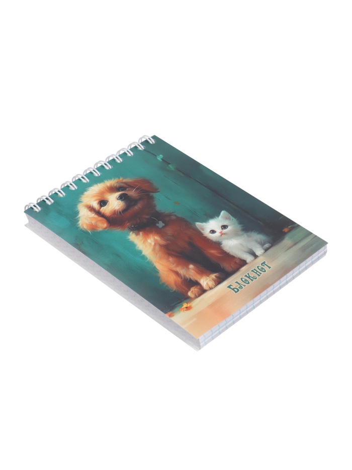 Блокнот на гребне А6 кл 80л "Щенок и котенок", ВД-лак, офсет, 60 гр/м2