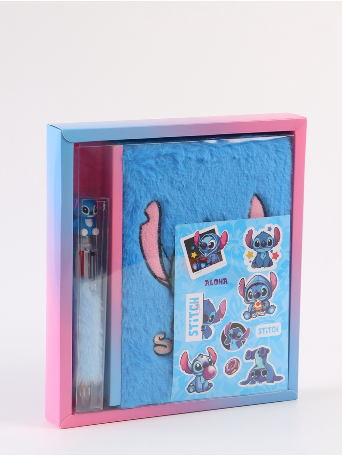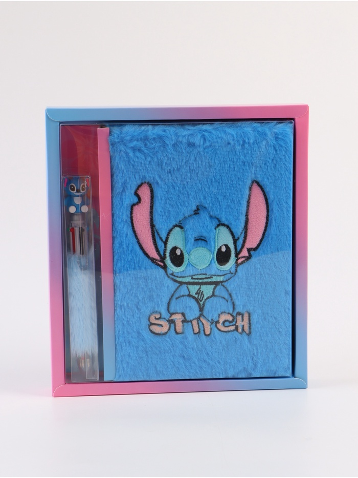 Технические характеристики Блокнот пушистый и ручка многоцветная «Стич», голубой