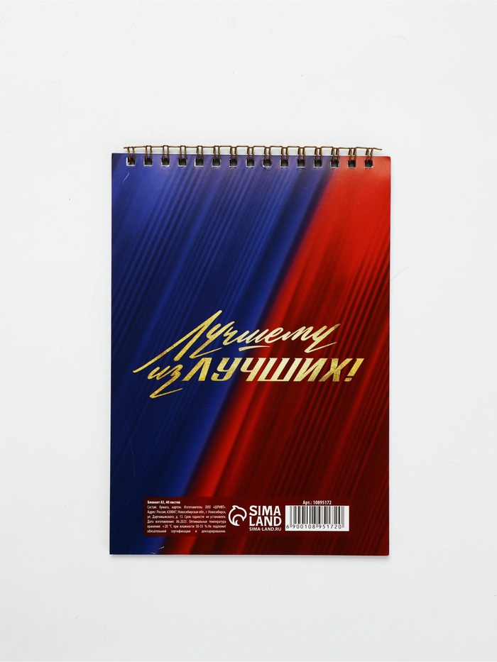 Блокноты А5,40 л на гребне, обложка картон "С 23 февраля. Классика"