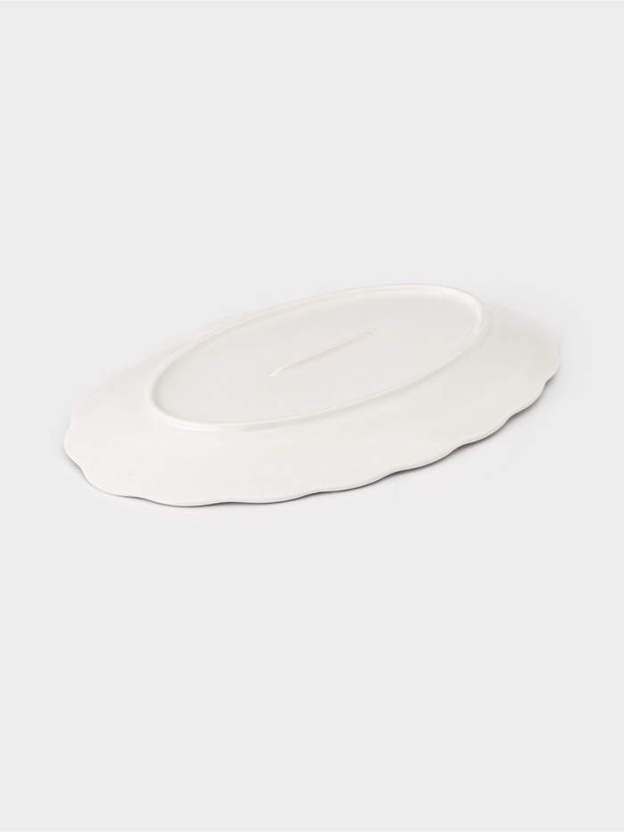 «Белое овальное блюдо» подойдёт в качестве основы для праздничной сервировки или повседневного использования. Керамическое изделие гармонично впишется в любой интерьер кухни. Посуда для подачи еды поможет хозяйке сэкономить время на подготовке к приёму гостей.