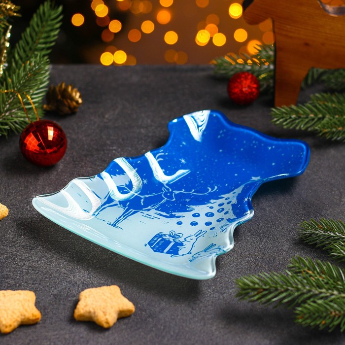 Блюдо стеклянное сервировочное Доляна «Ёлочка с бантом. Зимняя ночь», 21×16 см