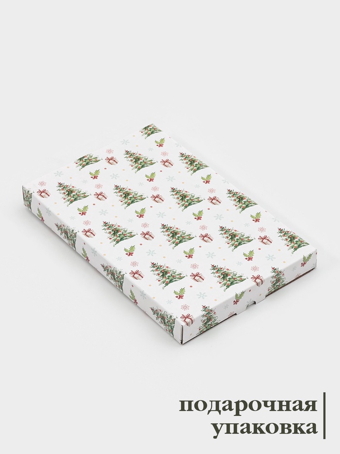 - Рождественская тематика: изображение ёлки выполнено в белом и зелёном — классических тонах зимних праздников.