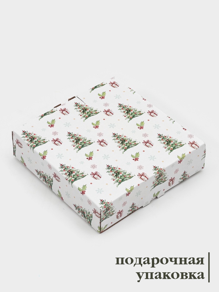 - Новогодняя тематика: рисунок с зверьками выполнен в белом и зелёном — цветах, которые сразу вызывают ассоциации с хвойным лесом и снегом.