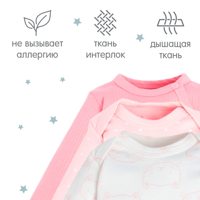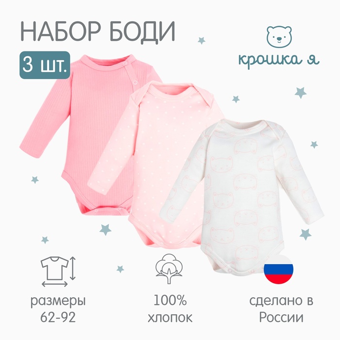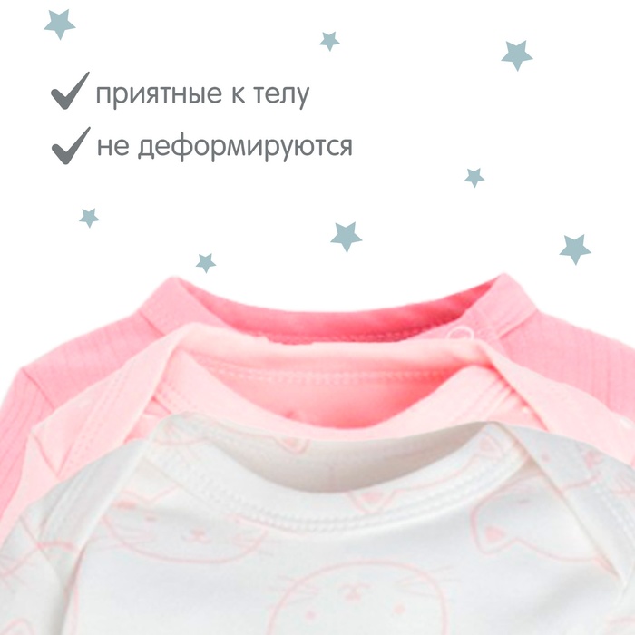 Боди детские с длинным рукавом Крошка Я «Котик»-3 шт., рост 68-74 см