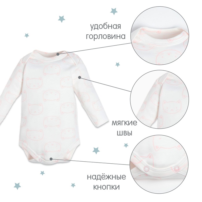 Технические характеристики Боди детские с длинным рукавом Крошка Я «Котик»-3 шт., рост 68-74 см