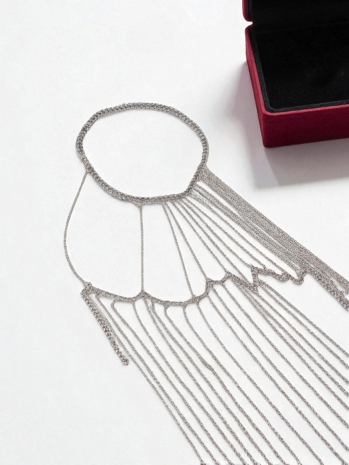 Этот бодичейн не только привлекает внимание, но и подчеркивает вашу индивидуальность, идеально сочетаясь с различными нарядами — от повседневных до вечерних. Его универсальный дизайн позволяет носить его как на одежде, так и на голом теле, создавая эффектный акцент.