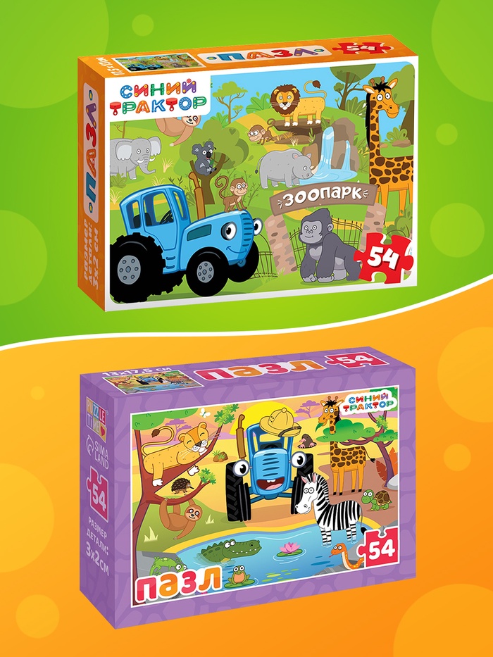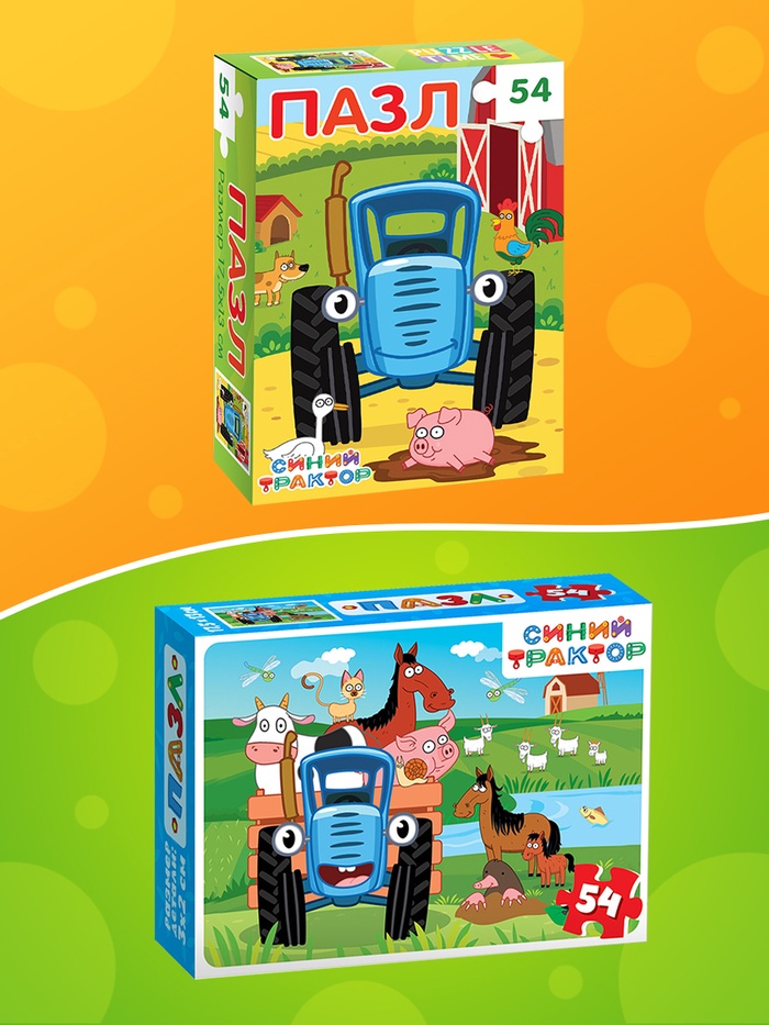 Набор пазлов «Синий трактор» — это увлекательный комплект из 10 головоломок, каждая из которых состоит из 54 деталей. Этот набор создан для детей от 3 лет и перенесёт ребёнка в мир любимого мультфильма про доброго синего трактора и его друзей. Собирая пазлы, малыш создаст яркие картинки с любимыми персонажами, которые станут частью семейного досуга или украсят детскую комнату.