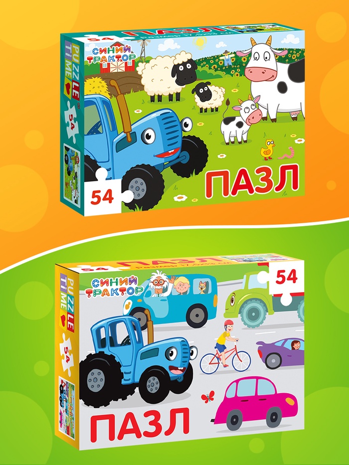 Пазлы «Синий трактор», большой набор 10 в 1, 54 детали в каждом