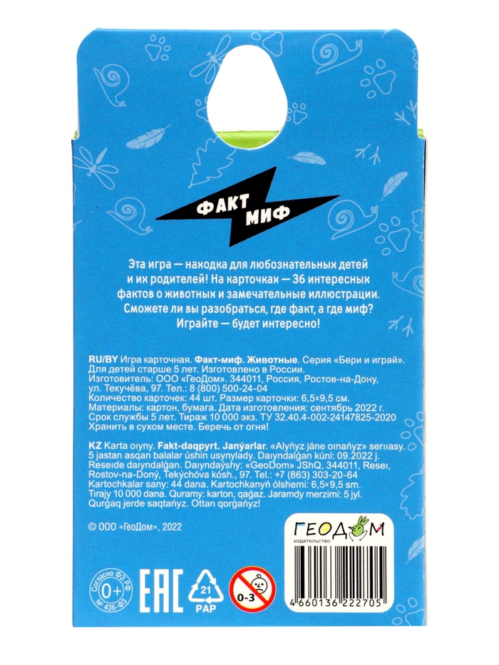 | Материалы из которых произведен товар | Картон |