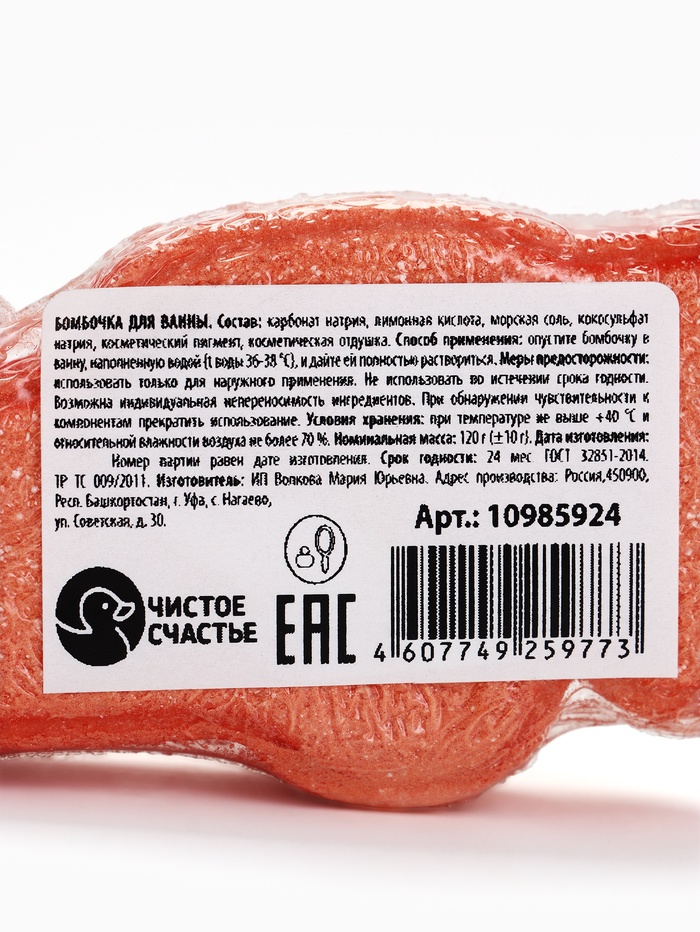 Технические характеристики Бомбочка для ванны, 120 г, машинка