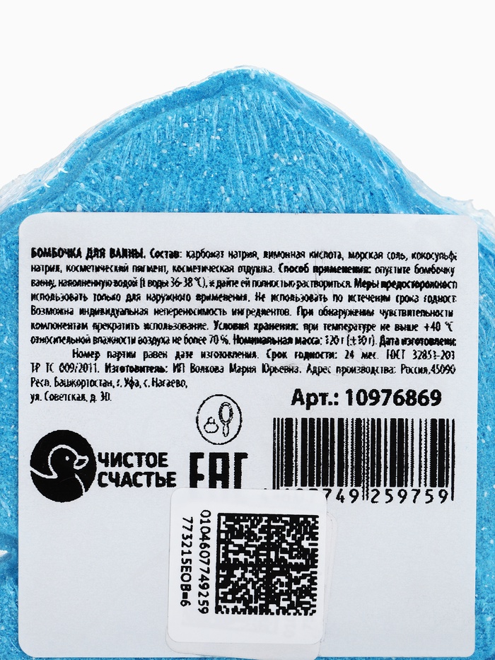 Технические характеристики Бомбочка для ванны: «Монстрик», 120 г, Чистое счастье