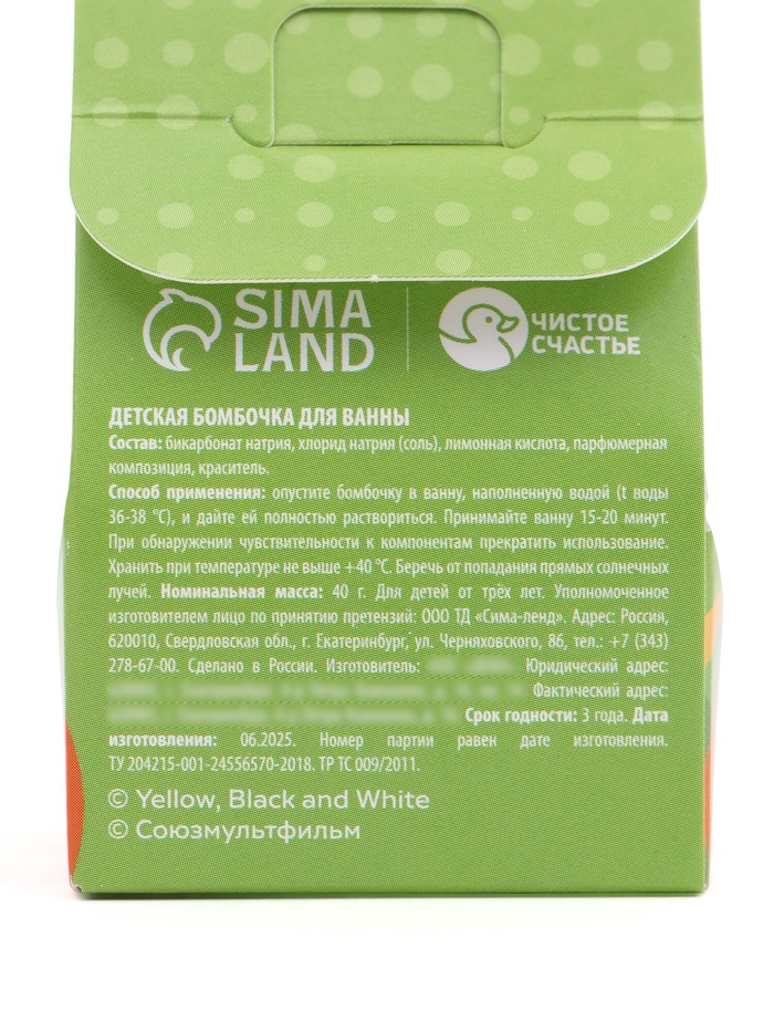 Бомбочка для ванны детская 40 г, аромат апельсин, в коробке, Чебурашка