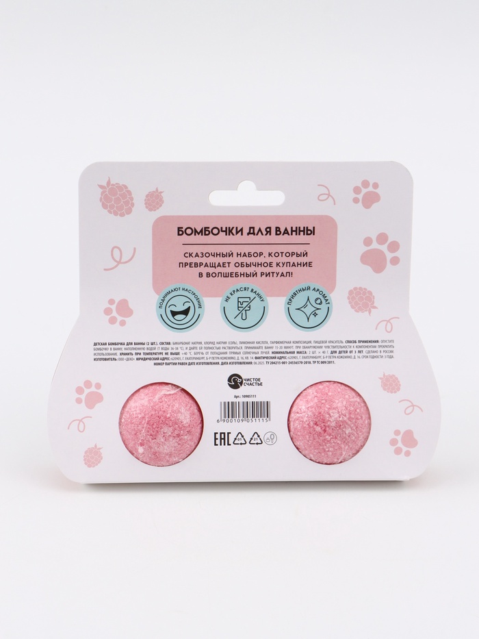 Бомбочки для ванны детские, 2×40 г, аромат малиновый кексик, Кошечка